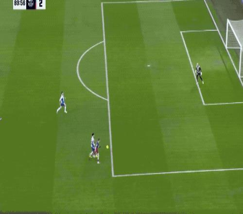 第90分钟,又是费尔明,他突破到了底线倒三角回传,莱万将球打进。