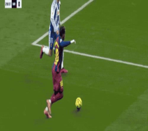 第28分钟,接到埃里克·加西亚的传球,亚马尔上演马赛回旋,轻松晃过后卫,之后的似传似射没能命中目标。