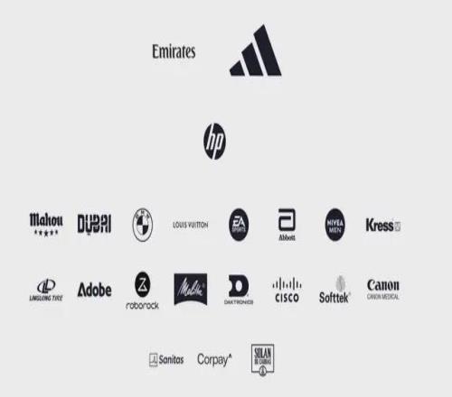皇马官网显示的赞助商阵容