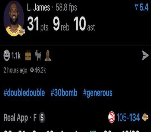 詹姆斯再次拒绝刷数据!他提前打卡!31分9篮板10助攻!